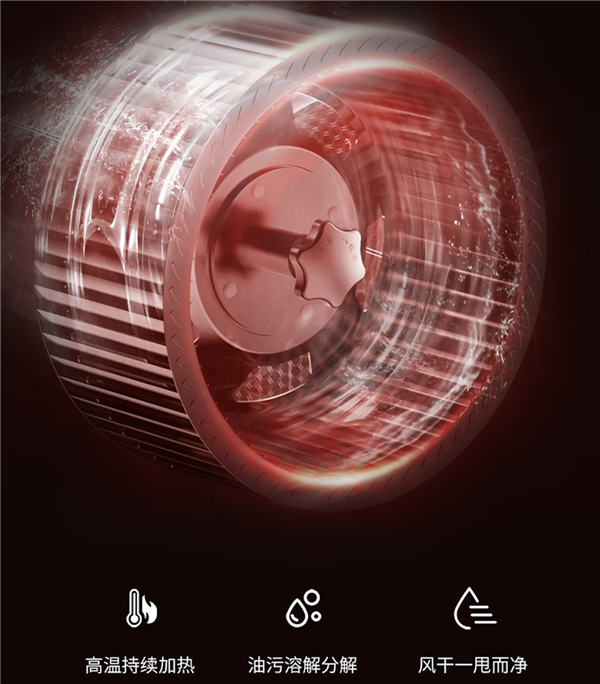 乐视油烟机K12还具有一键热清洗功能,即利用高温加热溶解油污,通过叶轮高速旋转的离心力作用将油污甩落,风干一甩而净免去水洗步骤,保证油烟机的强大吸力和使用寿命。