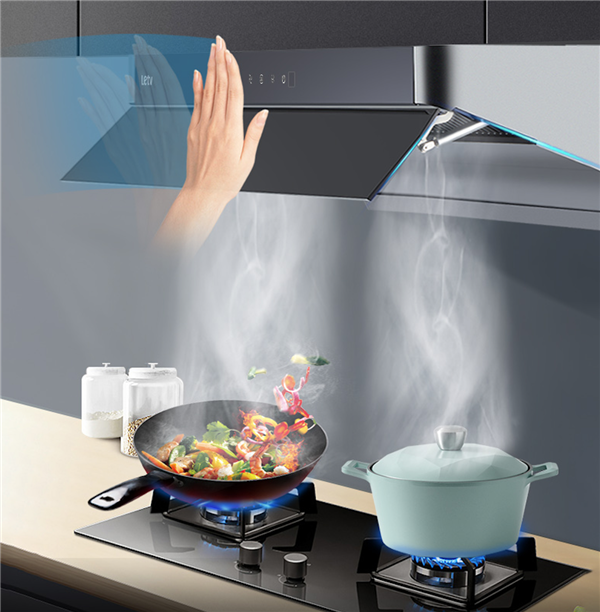 乐视油烟机K12还将智能手势控制与烟机进行了整合,右挥,即可操作开机、风量调节以及照明,而左挥可以延时净吸及关机操作,让烹饪美食的你,即使双手不便操作时,也能随心操控家里的油烟机。