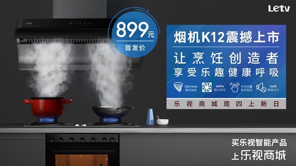 12月16日,乐视智能生态又一新品油烟机K12在乐视商城上架销售。22m3/min飓风拢吸,400Pa强大风压,低分贝降噪设计,还有聪明懂你的 “挥手智控”功能。据悉,这款新品K12在乐视商城仅售899元。