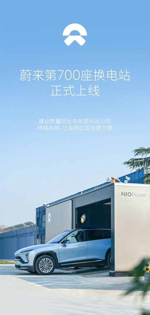 今日,位于G30连霍高速东海服务区内的蔚来第700座换电站正式上线,这意味着今年建成的总数比去年提升了10倍,并提前完成了2026年全年换电站建设任务。