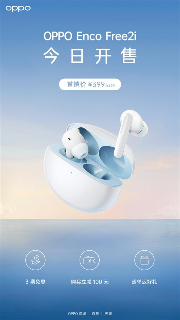 12 月 3 日消息,今日 OPPO Reno 7 系列正式发售,同时开售的还有 OPPO Enco Free2i 真无线耳机。这款产品继承了 Enco 系列的外观设计,采用纯白外壳,今日首发售价 399 元。