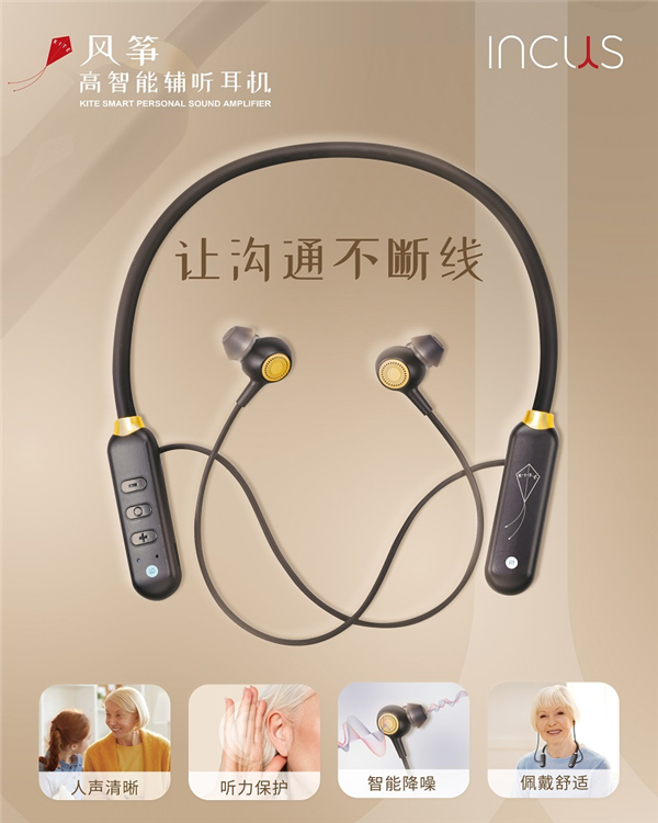 2017年,以上述技术为支撑的音科(深圳)技术有限公司在深成立(后更名“音科思”),并迅速推出第一代智能辅听耳机“风筝”。该耳机以智能降噪技术为独特优势,以自声消除、蓝牙耳机模式等功能为亮点,致力于为中轻度听损用户提供舒适的聆听体验。其降噪效果按行业标准PESQ测试,在不同音量等级下均优于传统高端助听器领域的六大国际品牌厂商。