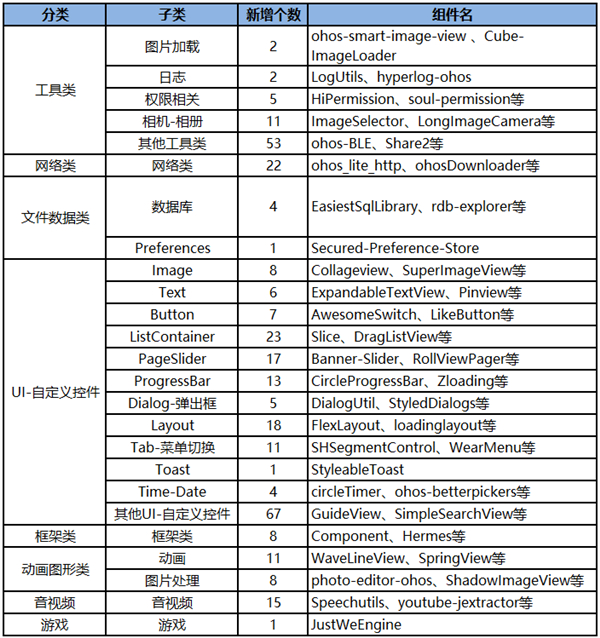 今日,HarmonyOS官方宣布,再次新增300+开源组件,共涉及8大类(工具、网络、文件数据、UI、框架、动画图形、音视频、游戏)。