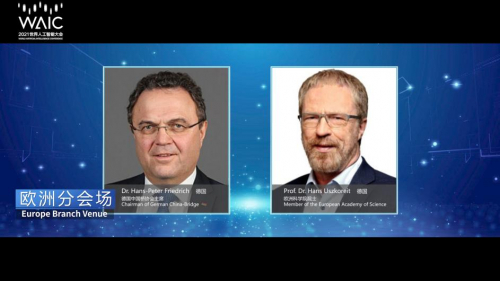 此次,今年的中欧企业AI治理对话论坛主要是通过线上形式召开,中国桥主席汉斯·彼得·弗里德里希博士(Dr. Hans-Peter Friedrich ),中国电子学会秘书长、党委副书记,中国数字经济百人会秘书长陈英先生,上海市人工智能协会秘书长钟俊浩先生以视频方式出席欧洲分会场活动并致辞。