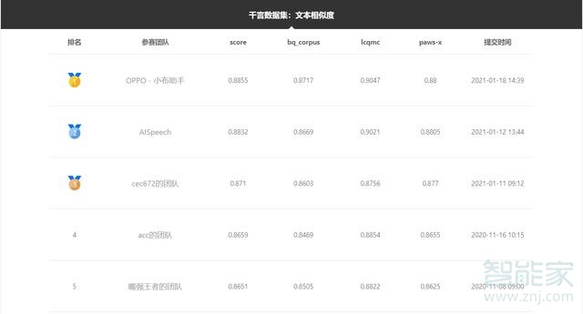 OPPO 小布助手算法团队凭借丰富的领域经验以及自研的大规模预训练模型,击败多个知名团队并冲上排行榜第一。