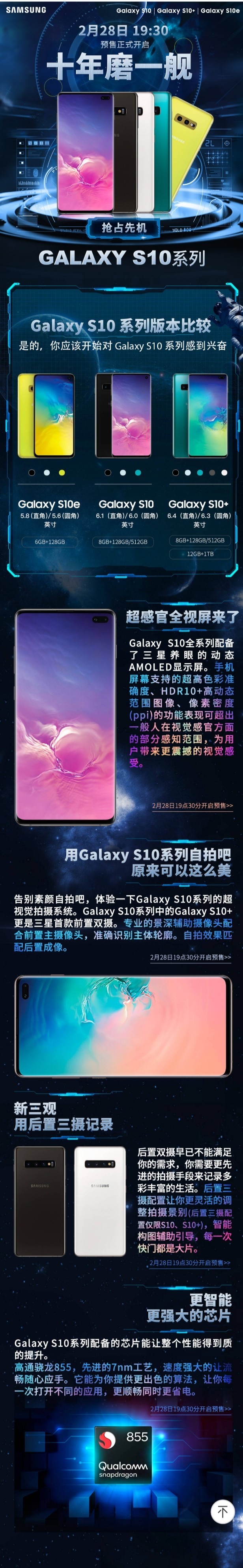 根据三星官微发布消息,新一代三星S10系列国行版将于今天在乌镇发布,晚上19:30即开启预定,下面我们一起来了解下相关信息。