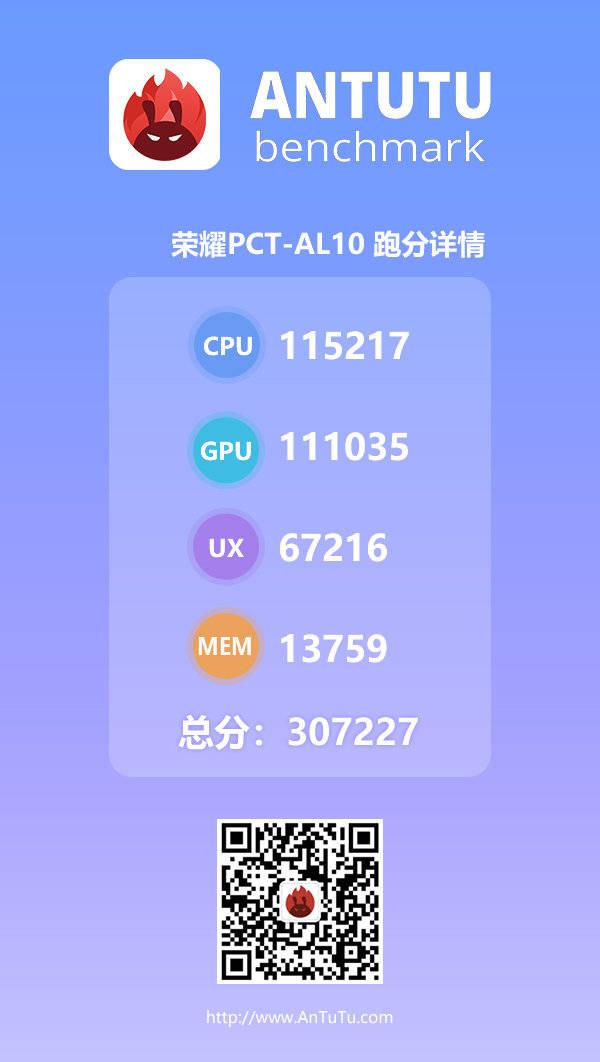 下面我们一起来看看荣耀v20的安兔兔跑分: