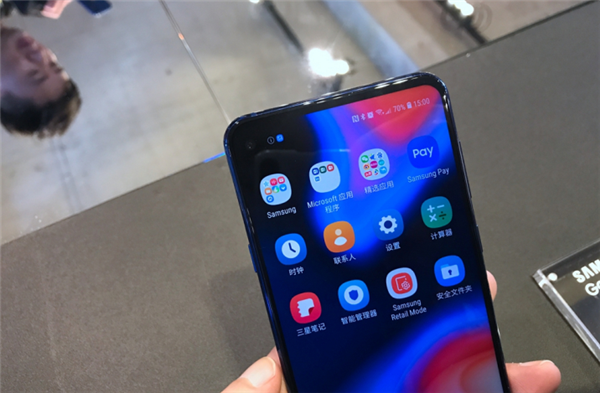 三星a8s正式发布三星A8s正面采用打孔屏设计,摄像头在手机的左上角,这款屏幕三星称之为“黑瞳全视屏”。手机背面则采用三摄像头设计。在颜色上,三星A8s采用了渐变机身设计,手机中框上也采用了与后壳类似的渐变设计。