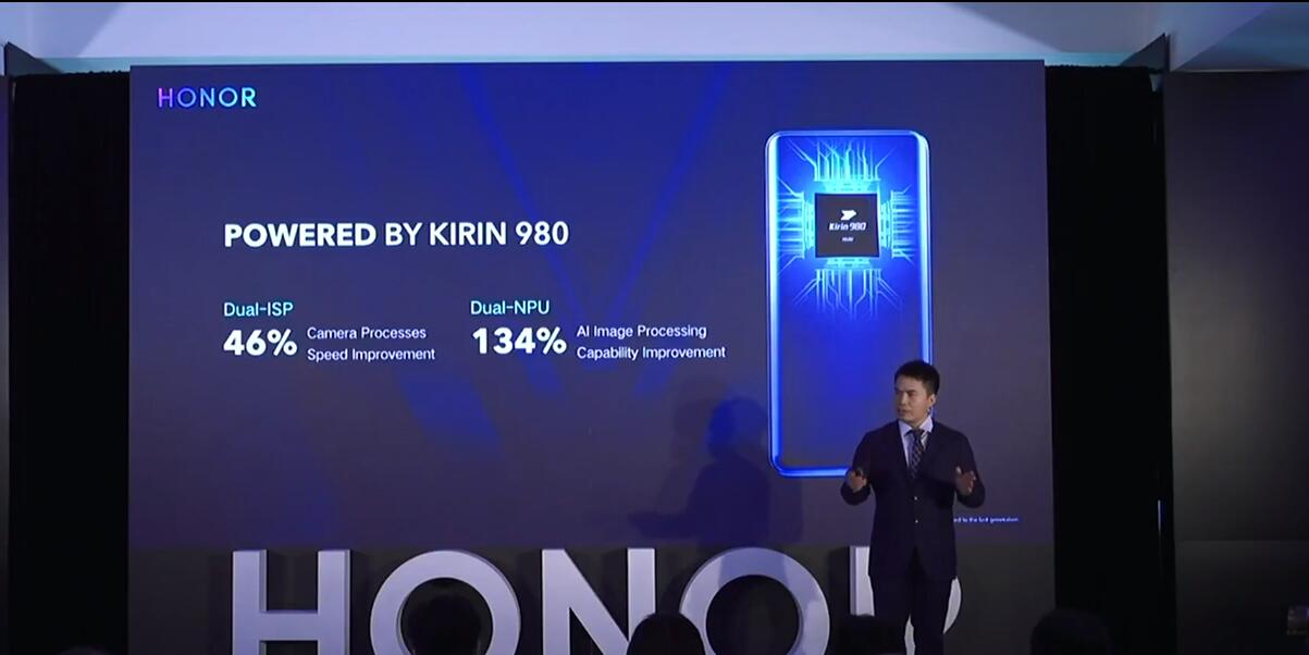 荣耀V20将率先搭载此次推出的三项“震撼”技术,分别是Link Turbo、4800万像素摄像头和魅眼全视屏。