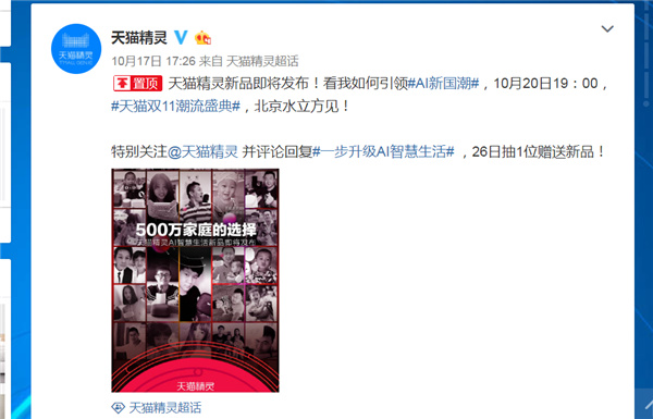 天猫精灵10月20日将再发布新品作为生活居家的语音助手,智能音箱在如今的家庭当中有着举足轻重的地位。其人性化的设计和强大的功能给很多用户带来了欢乐和便利。近日,据天猫精灵官方微博透露,在10月20日将再推出一款天猫精灵智能音箱。