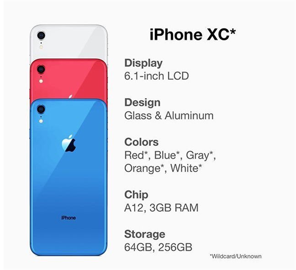 iPhoneXC将拥有双面玻璃、金属中框,刘海屏。折扣廉价版iPhoneX,将配备6.1吋 LCD 屏,支持3D Touch,前置Face ID,主摄为单摄像头。而且将拥有多种配色,红、蓝、灰、橙、白等。64GB/256GB 两个版本。