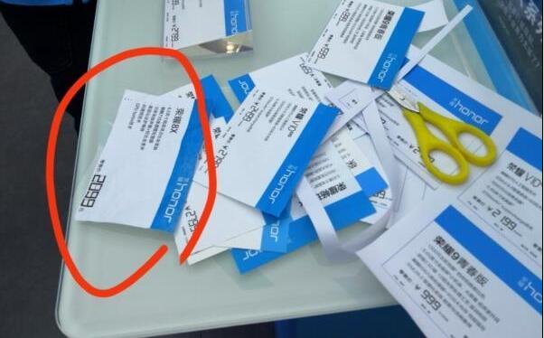 荣耀8x价格曝光今天,有网友曝光了一张在荣耀手机体验店里偷拍的谍照,赫然可以看到一张荣耀8X的“名片”,虽然配置看不清楚,但价格赫然可见为2099元。