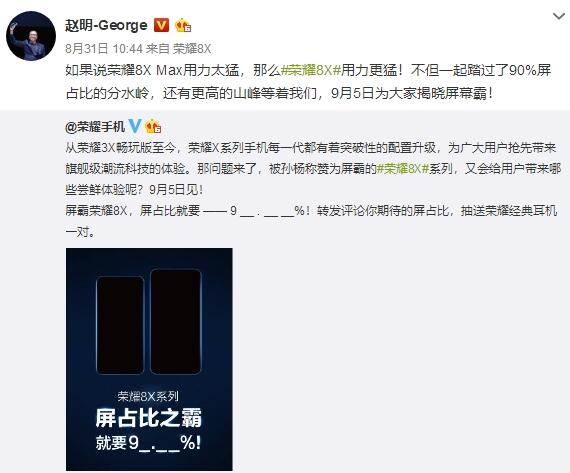 荣耀8X系列将采用所谓“珍珠屏”设计,也就是正面顶部只保留一颗前置摄像头的水滴屏,屏占比超过90%,其中荣耀8X Max的尺寸达7.12英寸,握感则相当于传统6.3寸机型。