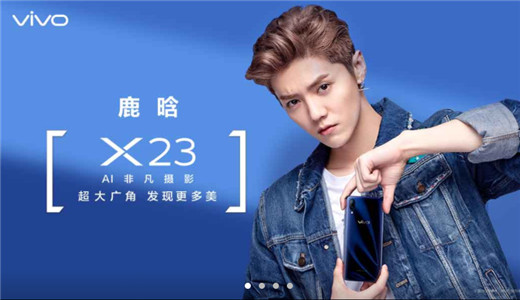 目前,vivoX23已经在官方网站开始了预约,并公布了将有8+128GB的存储组合,同时还确定了代言人分别为流量明星蔡徐坤,鹿晗和超模刘雯,甚至场地广告也已经在网络上被曝光。