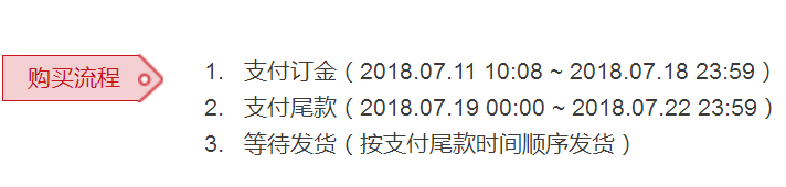 支付订金的截至时间是到2018年7月18日23:59,然后在7月19日0:00到7月22日23:59之间支付尾款的用户可以享受花呗、掌上生活3期分析免息。商城将会按照支付尾款的时间顺序进行发货。