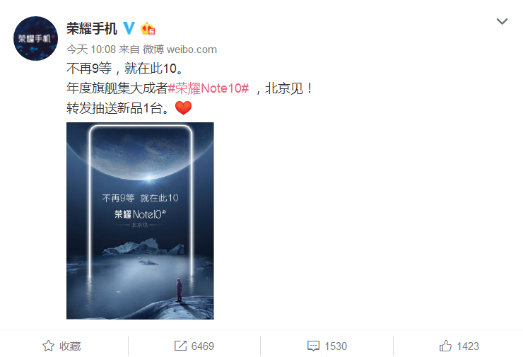 期待已久的荣耀note10终于正式官宣了,之前还穿过note10取消的消息,这次真的是确定了。今天上午荣耀官方微博发布了“年度旗舰集大成者荣耀Note10 ,北京见!”,我们一起来看看吧!