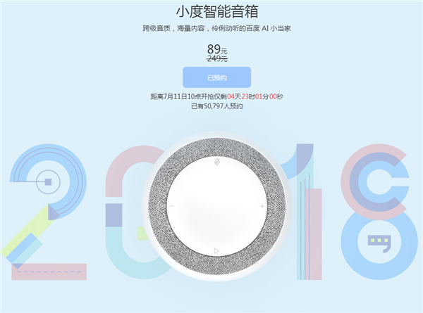 小度智能音箱抢购从7月4日上午10点,也是百度开发者大会开始,我们小度智能音箱就可以开始少量购买了,但需要提前预约才能有抢购的资格,刚到10点小度就已经被抢购一空,第二次抢购在7月5日上午10点,也是开发者大会的第二天,小度以同样的状态被抢购一空。