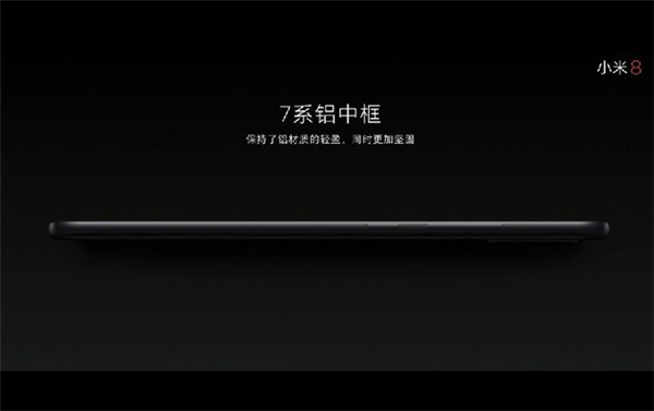 小米8的黑色版,背部采用了4曲面玻璃构成,配备了7系列铝中框。