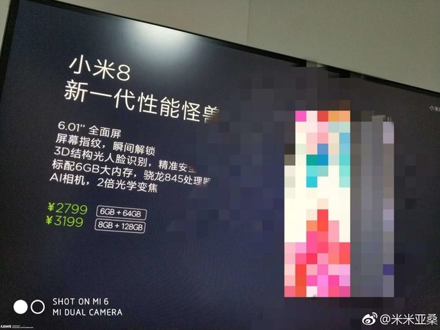 小米官方已经确定小米8将于5月31日在深圳发布,小米手机一贯以性价比高为宣传点,所以很多人比较关注小米8的价格。虽然发布会还没有开始,但是小米8的价格已经被曝光了,我们一起来了解下吧。