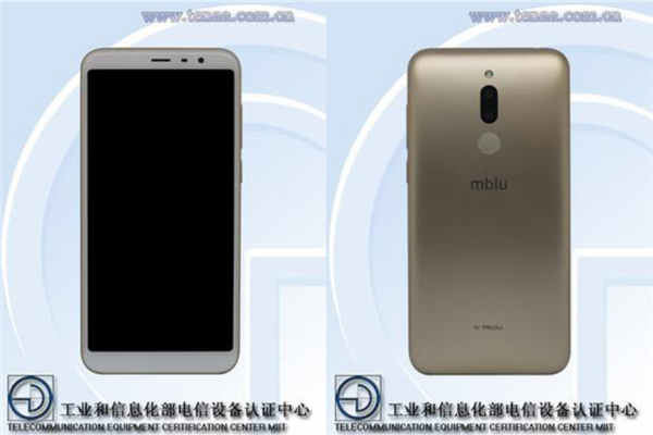 魅蓝新机亮相工信部今天小编在工信部看到了这款魅蓝手机的新品,同样搭载了如今流行的全面屏设计。外观方面,魅蓝M811Q背面应该为塑料机身,手机正面取消了实体Home键。机身背面为竖排双摄,下方是指纹识别区域,以及mblu的Logo。整体来看,该机十分圆润,颜值还是不错的。
