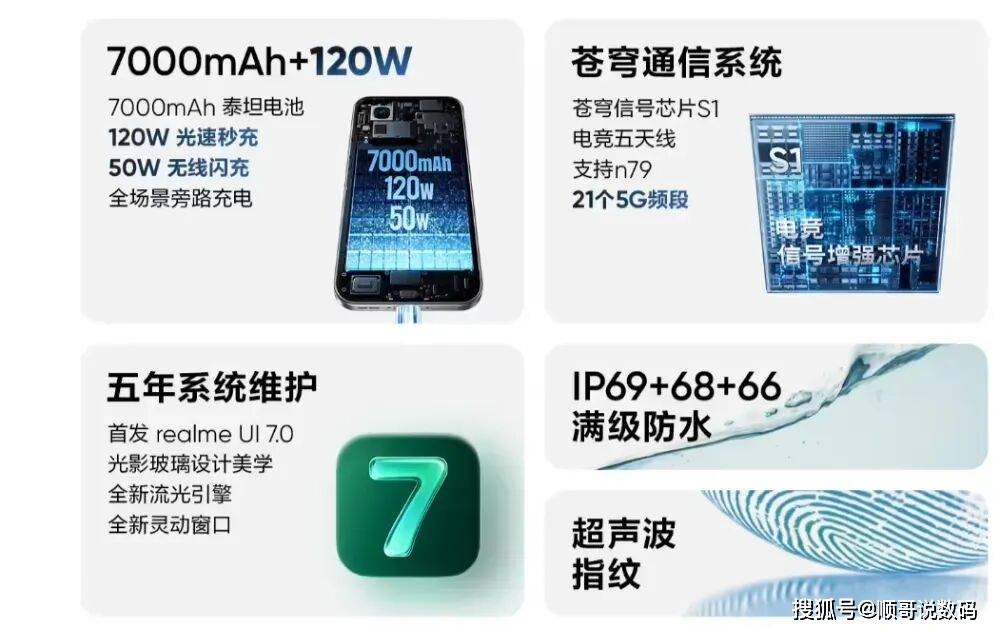 电池与快充:内置 7000mAh 第二代泰坦电池,支持 120W有线闪充 + 50W无线闪充,且机身比前代还薄了 0.35mm。