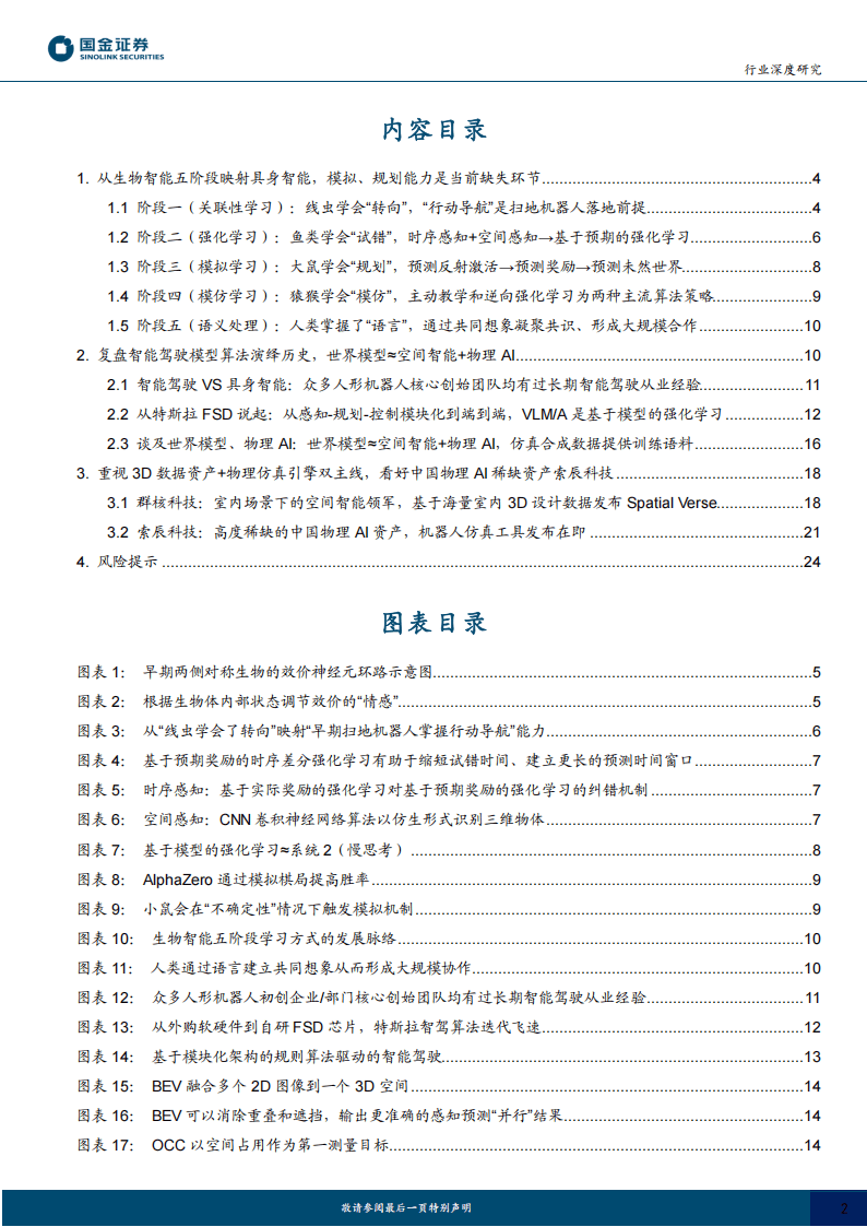 智能驾驶技术的发展为具身智能提供了重要借鉴。以特斯拉FSD为例,其技术路径从早期的模块化架构,逐步演进至基于BEV(鸟瞰图)与OCC(占用网络)的端到端模型。这一转变使机器能够从2D图像中构建3D空间认知,初步实现“空间智能”。而近年来出现的VLA(视觉语言动作模型)等系统,进一步将“慢思考”机制引入机器决策中,使其具备逻辑推理与反事实学习能力。这种基于模型的强化学习,不仅是智能驾驶“好用”与“可用”的分水岭,更是未来通用机器人能否真正落地的关键。