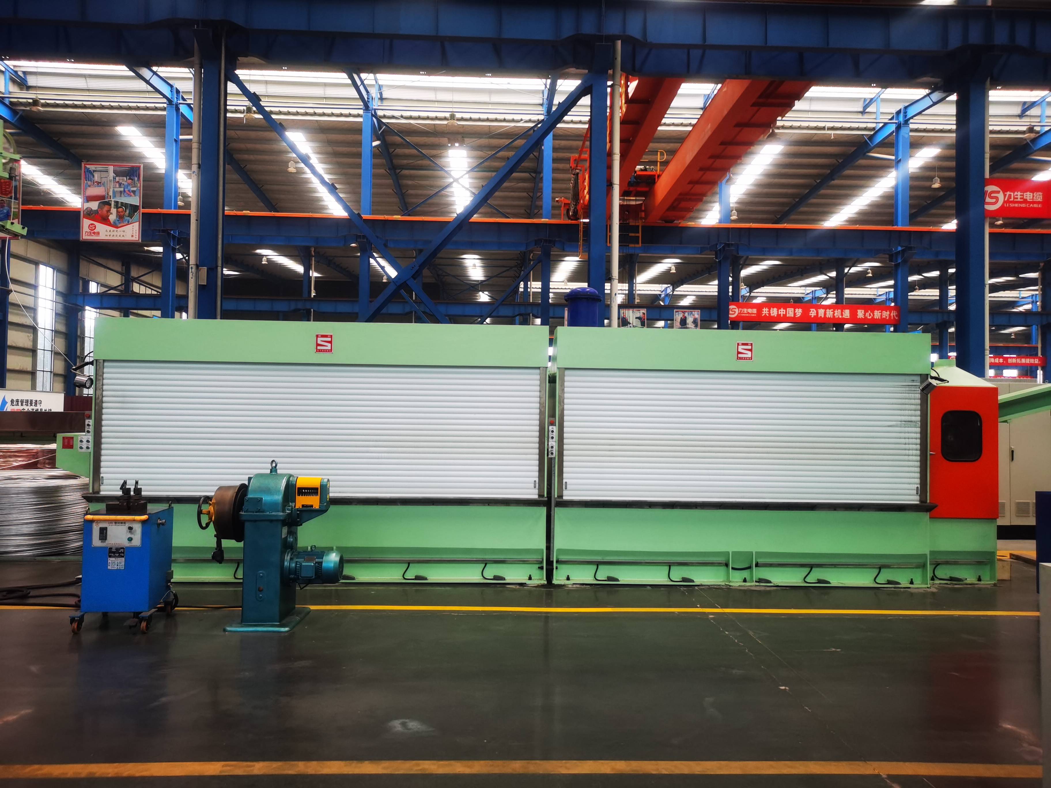斯创机械的双头分电机铝大拉机具有众多突出特点。在产品质量与稳定性方面,精确的张力控制是其一大亮点。分电机驱动配合先进的 PLC 控制系统,可以对每个拉拔头之间的张力进行极其精准的控制,让线材在整个拉拔过程中受力均匀、稳定,有效避免了因张力波动造成的表面刮伤、竹节痕、尺寸波动等质量问题。其生产出的铝线表面光滑、亮泽,一致性好,机械性能也更加均匀稳定。在节能效果上,按需分配功率、减少传动损耗以及能量回馈技术的应用,让设备能耗大幅降低。传动效率高达 95%以上,在减速或制动时,伺服电机还能将动能转化为电能回馈电网,进一步降低能耗。此外,操作便利性与智能化也是其特点之一,大尺寸触摸屏的人机界面友好,所有参数一目了然,设置和调整方便;一键式操作预设多种产品的工艺参数配方,更换产品时调用相应配方即可自动完成电机速度匹配,降低了对操作工技能的要求,也避免了人为失误。