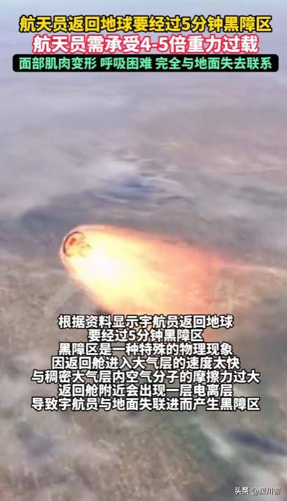 不过,在这段看似普通的“返航之旅”中,却藏着一段惊心动魄的经历,当返回舱穿越黑障区,整个就被烧成了大火球,并且还和与地面彻底失联,这也是航天员所面临的生死关卡。