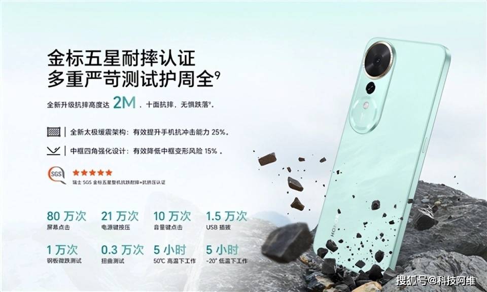 另外这款荣耀畅玩70 Plus的耐用性也不错,和荣耀X70一样获得了金标五星耐摔认证,抗摔高度达到2米,太极缓震架构提升了整机的抗冲击能力,中框四角的强化设计则有效降低了15%的中框变形风险,不过它的防水性要比支持IP69K的荣耀X70略弱一点,是IP65级别的,不过也支持湿手触控3.0技术,操作的准确性能达到99%,不直接泡在水里基本上也没问题。