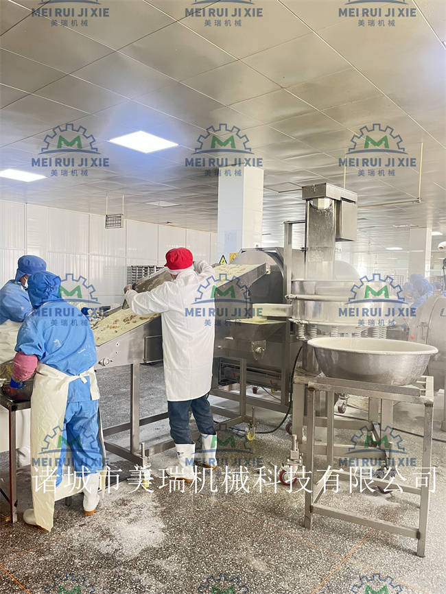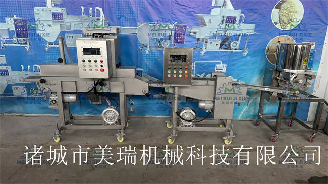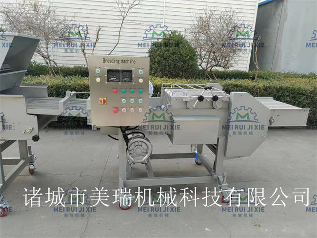 全自动裹糠机 带调速型鸡柳裹面包糠机器 不锈钢粘糠机 全自动裹糠机器炸鲜奶裹糠机 厂家直供美瑞牌全自动裹糠机上糠机 肉饼鸡排裹面包糠专用设备 避免过多浆料进入到下一工序,造成浪费启动输送网带,覆盖整个网带的宽度,即可放入产品予以上浆。上设备工作前,向浆槽内使得淋浆系统形成均匀的瀑布,注入准备好的浆料,(浆槽内有浆液过滤罩,浆液深度一定不能没过滤罩),风量的大小则可以通过调节风管上的风量调节阀来控制,浆过程中科根据上浆情况,启动浆料泵,调节进浆阀门的流量,适当调节网带的输送速度,和风刀的位置,让产品整齐排列以及充分裹浆,