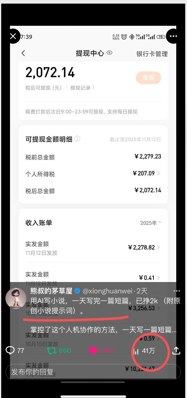 我标题取的比较平淡,但是我在x上拿到了41万多的展示量。