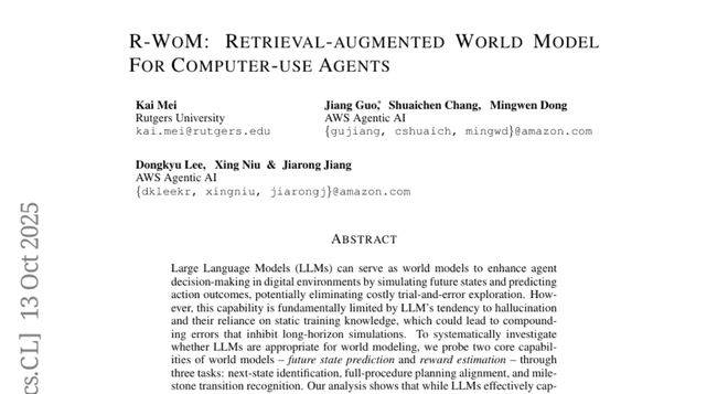 说到底,这项由罗格斯大学和AWS团队联合完成的研究,为AI在复杂环境中的应用开辟了一条新路径。R-WoM系统最大的价值在于它解决了一个长期困扰AI领域的核心问题:如何让AI既能进行长期规划,又能保持与现实环境的同步。