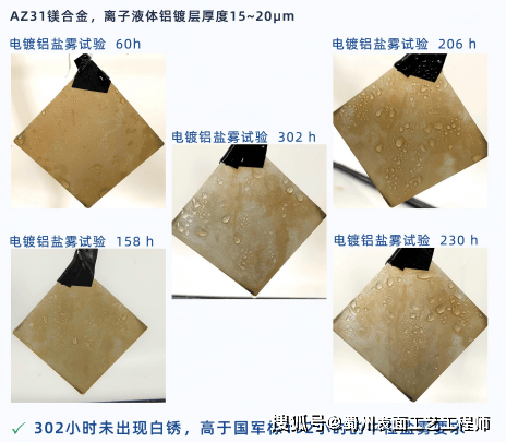 镁合金表面离子镀铝后盐雾试验