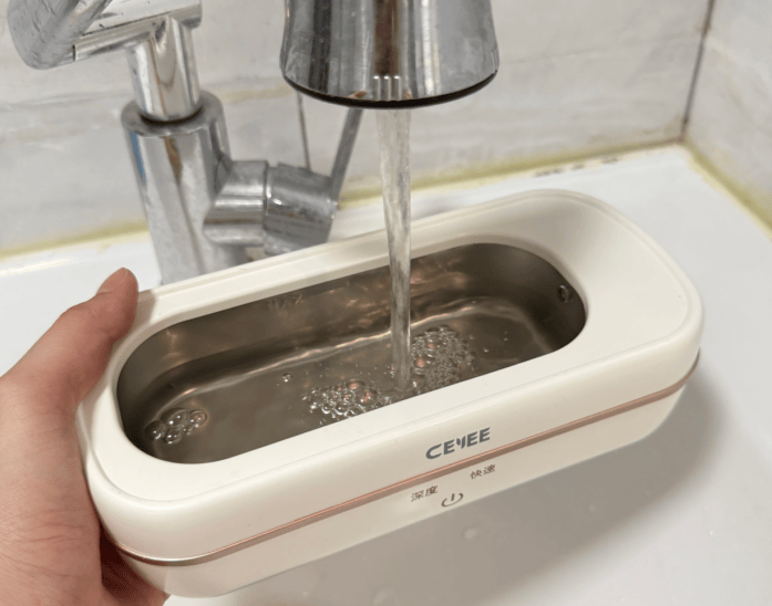 清洁能力:美的MXV-01采用45000Hz超声波振动频率,能促使水分子高频振动形成密集气泡,气泡破裂产生的冲击力可有效清除物品表面及缝隙的污渍。对于眼镜上的指纹、首饰的日常汗渍、手表表带的灰尘等常见污渍,清洁效果较为明显,不过面对一些凝固的油渍或深入纹路的陈旧污垢,清洁力度略显不足,整体可满足日常常规清洁需求。