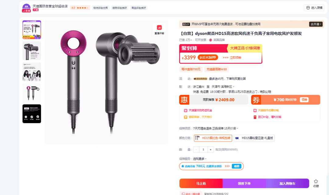这次我们拿到戴森吹风机的抄底价团购,先看超级经典的戴森吹风机,官网售价是3499元。