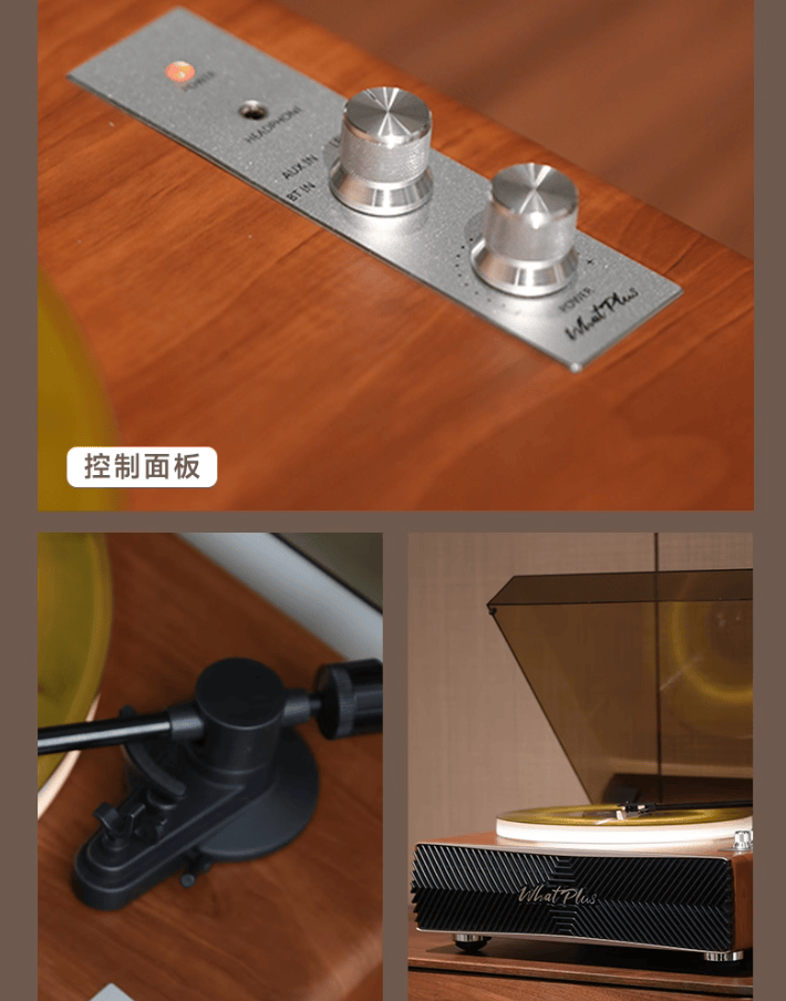 • 问加1916(活动价≤700元,支持12期免息):胡桃木纹面板摸起来有真实颗粒感,不是廉价贴纸,茶色透明机盖一扣,跟我宿舍的ins风书桌简直是“天选CP”。最让我尖叫的是LED发光唱盘,开机瞬间暖光漫出来,拍爱豆专辑开箱视频时,背景直接自带打光,朋友圈点赞秒破百!机身重量5.3kg,女生一人能拎到床上,周末窝着听歌超惬意。配件诚意拉满:电源线、AUX线、说明书清清楚楚,甚至送了一张试音黑胶,不用额外花钱买唱片,插电就能给爱豆“应援”,对穷学生太友好了。
