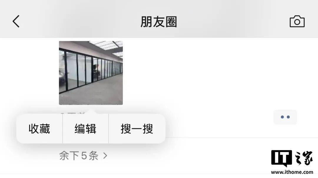 在微信 iOS 之前的版本中,于朋友圈中长按好友发布的图片和视频,会弹出含有收藏、编辑、搜一搜三个选项的菜单。