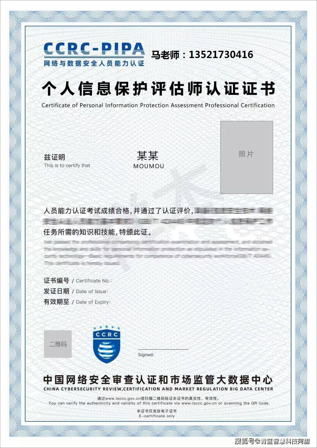 CCRC-PIPP个人信息保护专业人员,CCRC-PIPCA个人信息保护合规审计人员,CCRC-PIPA个人信息保护评估师认证,青蓝智慧马老师