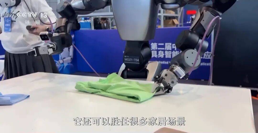 参赛队伍代表 蔡琬茹:参加的是机器人叠衣服的场景展示,同时它可以胜任很多家居场景,比如热饭、打扫屋子、打扫会议室、端盘子、做咖啡这些。