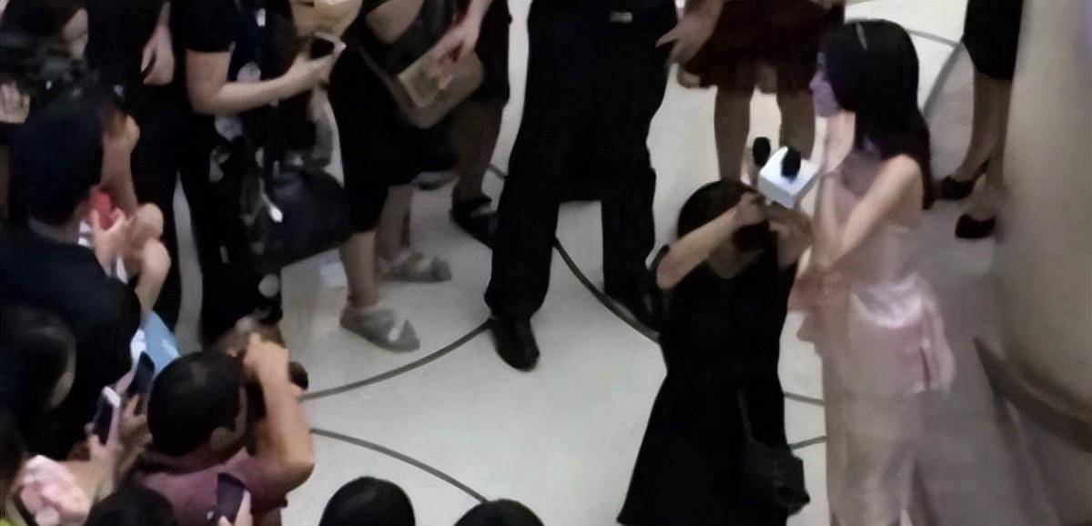 温碧霞在一次户外活动中,助理在烈日下跪着为她撑伞,周围明明有空椅子,但助理并没有坐下。