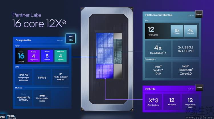 我们先来看看Panther Lake的“真身”。如果大家此前有关注过我们《18A制程首秀、新架构井喷:2025 Intel Tech Tour解析》这个内容,此时应该就能看出问题了。