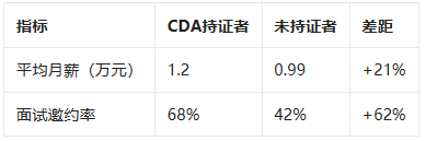 - 薪资优势显著:据《2024年数据人才薪酬报告》,CDA持证者平均月薪达1.2万元,比未持证者高21%(见图1)。