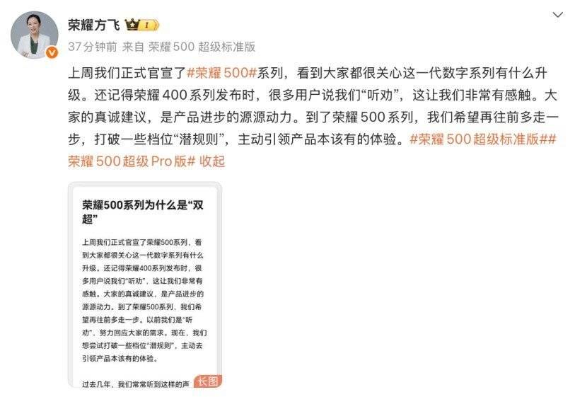 荣耀这波是真不装了。直接宣布:荣耀500 系列明天发布,两款机型,全员骁龙8系旗舰芯片。注意,是全员,不是“Pro用旗舰、标准用阉割”,是整个系列一起“端上来”。