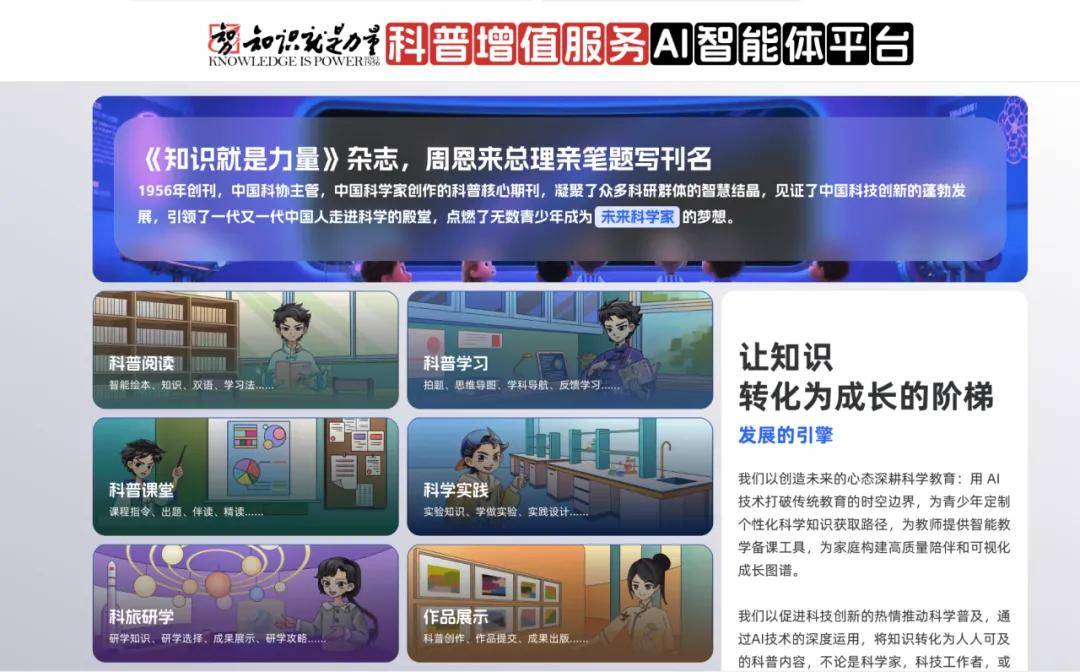 2025年6月,“知识就是力量科普增值服务AI智能体平台”正式上线,作为融媒矩阵的关键延伸,不仅整合科普阅读、学习、实践等多元功能,为青少年、教师及家庭提供个性化科学服务,还在全国科普月福州主场亮相并推出“小小提示词工程师” 体验活动,目前已服务多所科学教育特色校,进一步丰富了科普传播的智能生态。