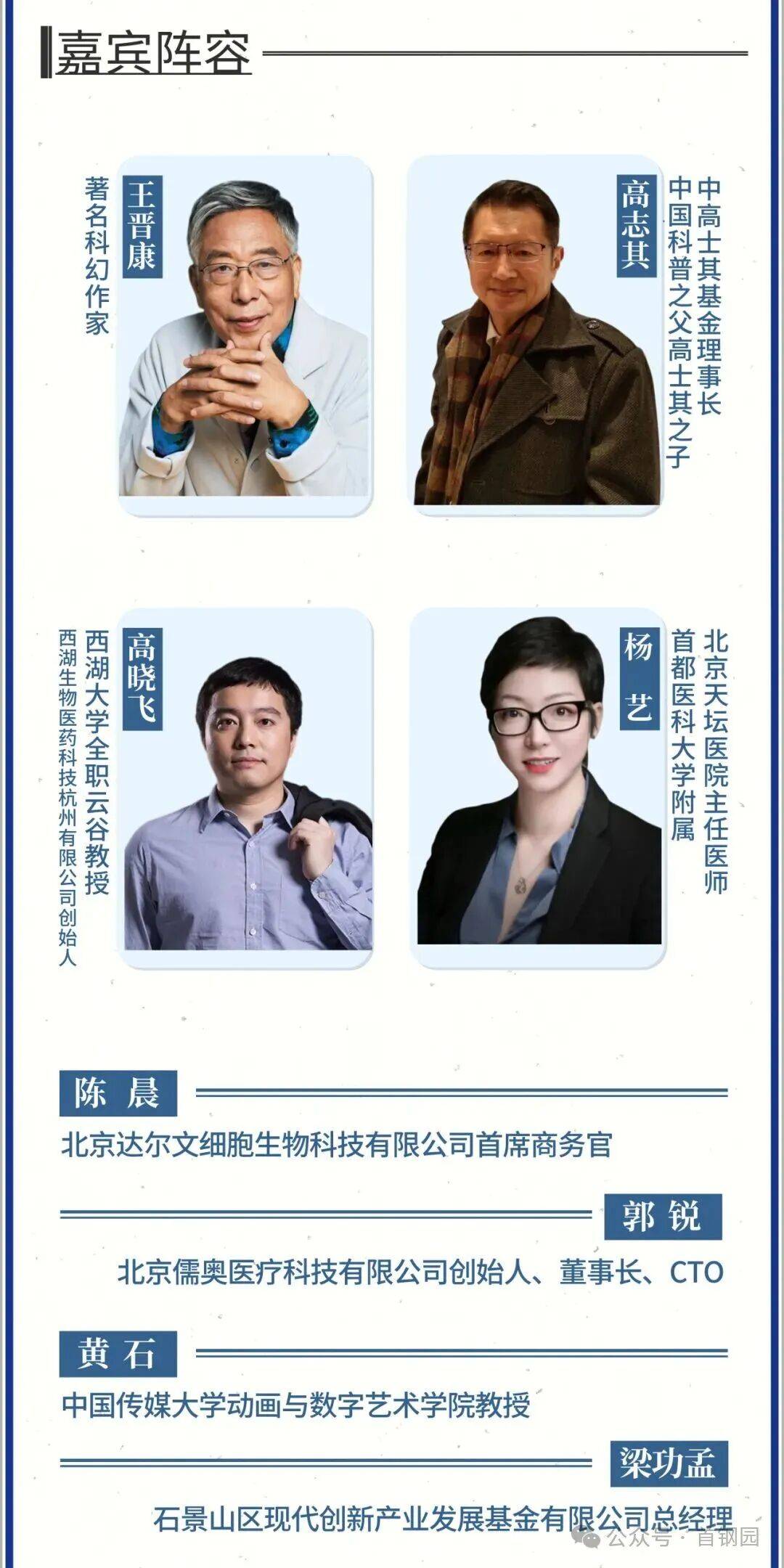 2025年是我国科普事业先驱高士其先生诞辰120周年,本期活动,生命科学、临床医学、脑机接口、投资领域、科幻创作的先锋代表将齐聚首钢园,致敬高士其科学精神,以科学精神为罗盘,以科幻想象力为风帆,共同绘制一幅“科幻+”赋能生命健康与文娱消费的产业新蓝图。