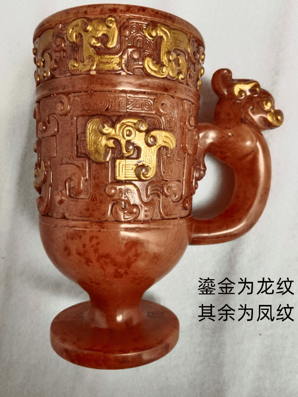 夏朝九鼎下落不明,目前唯一跟夏九鼎有关联的证据就是下面要介绍的戰國周顯王賀夀單龍附耳鎏金龍鳳玉杯。