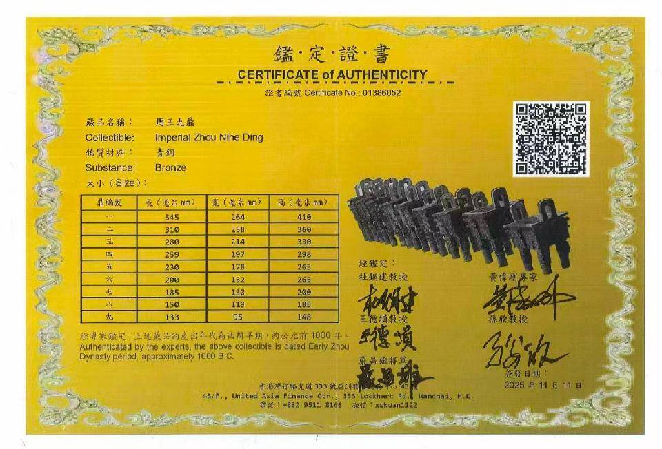 在夏九鼎查無下落的歷史謎霧中,周王九鼎在香江重現,強有力地證明了周代以夏九鼎為標準,在鼎等核心禮器的製造上,存在嚴格的形制、尺寸規範。為我們提供了三千年前周王室禮器製造體系的直接證據,考古失蹤的“周王九鼎”本身重返人間,其重要的歷史價值和現實意義由此可見。