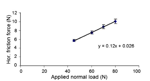 图4. 氯丁橡胶样品的施加法向载荷与最大水平摩擦力的关系