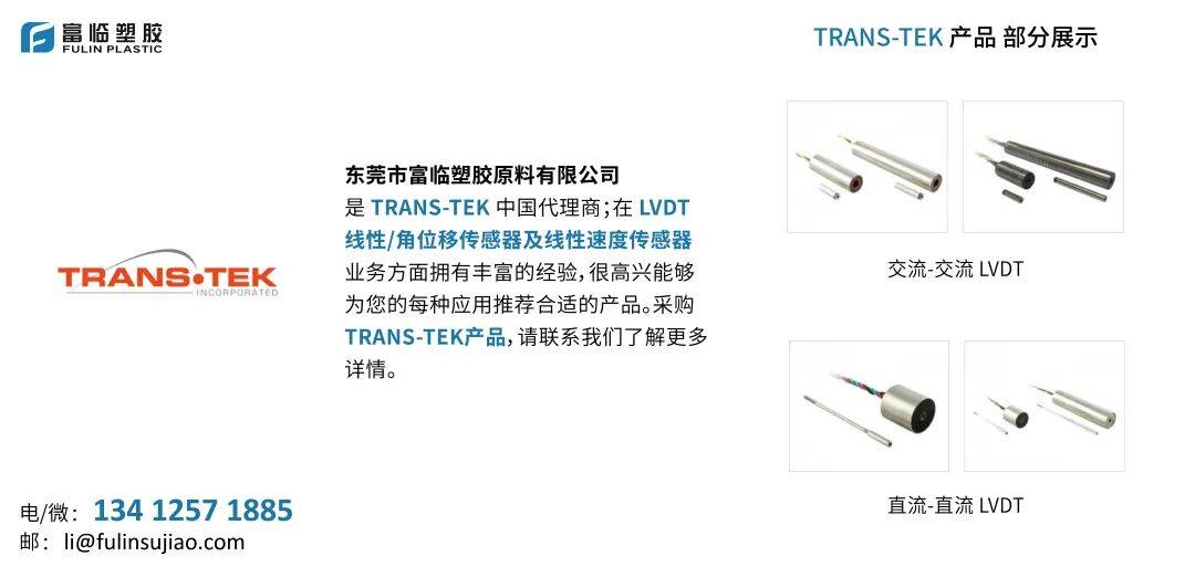 东莞市富临塑胶原料有限公司是 TRANS-TEK 中国代理商,为中国客户提供 LVDT线性/角位移传感器及线性速度传感器。