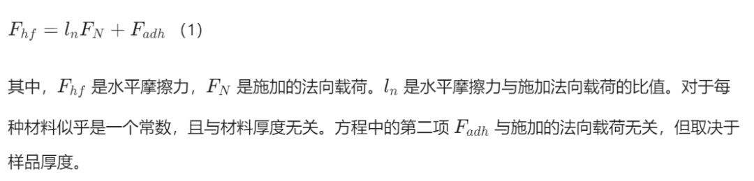 图5. 不同材料和厚度的施加法向载荷与最大水平摩擦力的关系